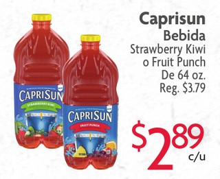 Caprisun Bebida Strawberry Kiwi o Fruit Punch De 64 oz.