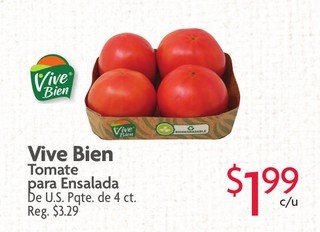Vive bien tomate para ensalada de u.s. pqte. de 4 ct.
