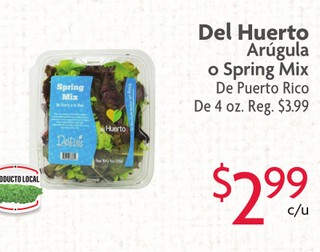 Del huerto arugula o spring mix de puerto rico de 4 oz.