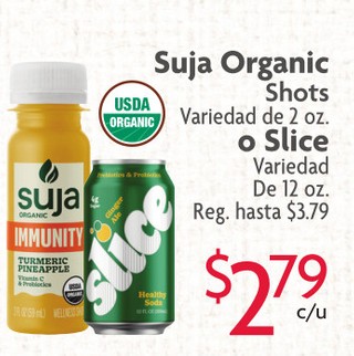 Suja organic shots variedad de 2 oz. o slice variedad de 12 oz.