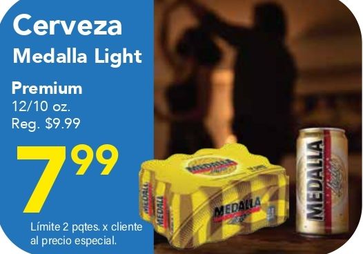 cerveza medalla light premium reg. $lĂmite pqtes. cliente precio especial. ldall medall