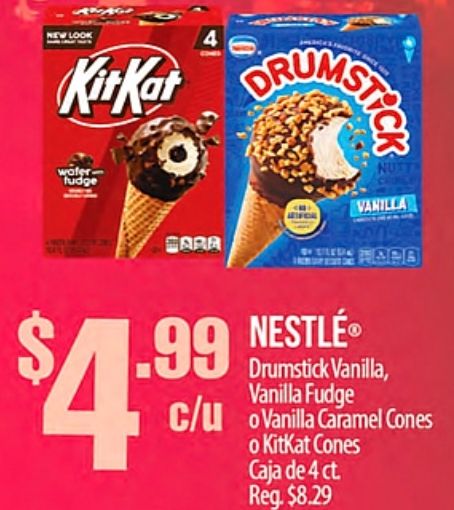 look kirkar rumor nutt wafer fudge vanilla ifor cara $nestlé $drumstick caramel cones kitkat caja reg.