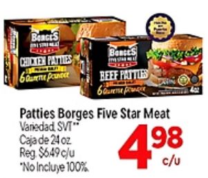 borges chicken pattes bancts urene pounce beef pattles patties five star meat variedad svt" caja $c/u incluye