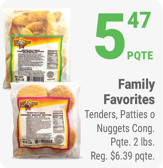 Family Favorites Tenders, Patties o Nuggets cong. pqte. 2 lbs.