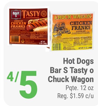 Hot dogs bar s tasty o chuck wagon pqte. 12 oz