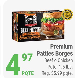 Premium Patties Borges Beef o Chicken Pqte. 1.5 lbs.