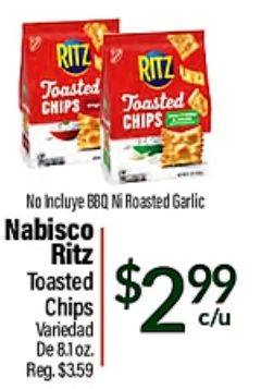 ritz toasted chips incluye roasted garlic nabisco variedad reg.