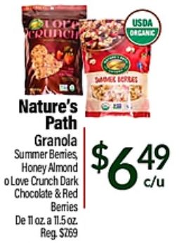 lore crunch usda organic nature's path granola summer bemies honey almond love dark chocolate berries $same borres