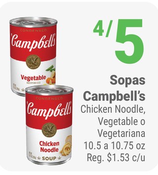 Sopas Campbell's Chicken Noodle, Vegetable o Vegetariana 10.5 a 10.75 oz