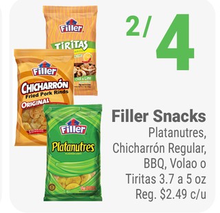 Filler Snacks Platanutres, Chicharrón Regular, BBQ, Volao o Tiritas 3.7 a 5 oz