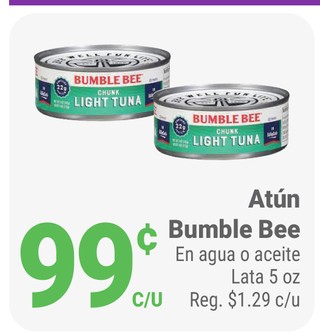 Atún Bumble Bee En agua o aceite Lata 5 oz