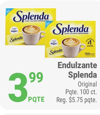 Endulzante Splenda Original Pqte. 100 ct. Reg. $5.75 pqte.