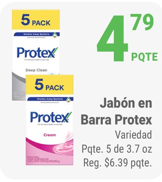 Jabon en barra protex variedad pqte. 5 de 3.7 oz