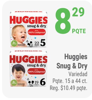 Huggies snug y dry variedad pqte. 15 a 44 ct.