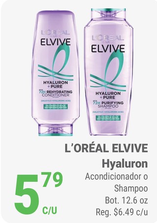 L´oreal elvive hyaluron acondicionador o shampoo bot. 12.6 oz