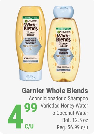 Garnier whole blends acondicionador o shampoo variedad honey water o coconut water bot. 12.5 oz