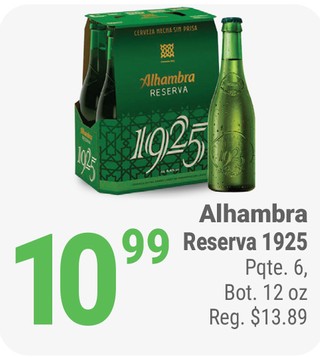 Alhambra reserva 1925 pqte. 6, bot. 12 oz