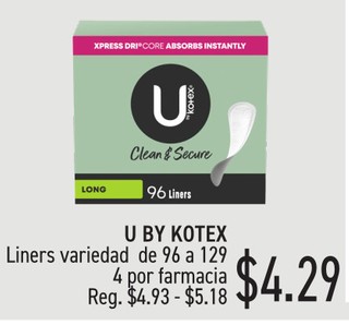 U BY KOTEX Liners Variedad de 96 a 129 4 por farmacia