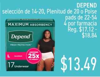 Depend seleccion de 14-20, plenitud de 20 o poise pads de 22-54 4 por farmacia