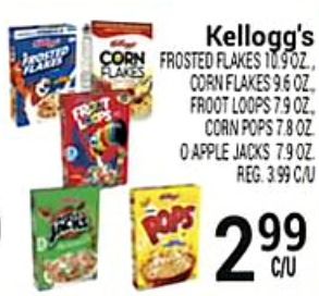 kellogg's corn frosted flakes froot loops pops apple jacks