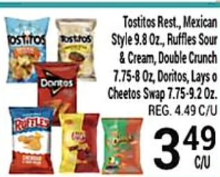 tostitos rest mexican ostitosostros style ruffles sour cream, double crunch dontos doritos, lays cheetos swap reg.