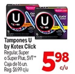 tampones kotex click regular super plus, svt" caja $c/u cuck