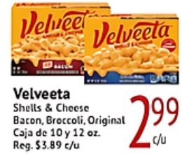 delveel velveeta shells cheese bacon broccoli, original caja reg. $c/u bard