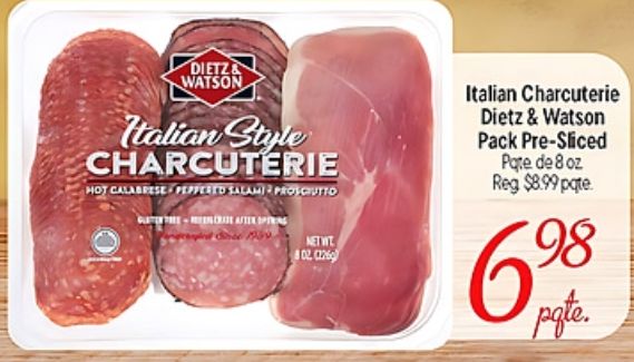 dietz& watson italian style charcuterie calabrese peppered salami prosciutto dietz pack pre-sliced pate $pate