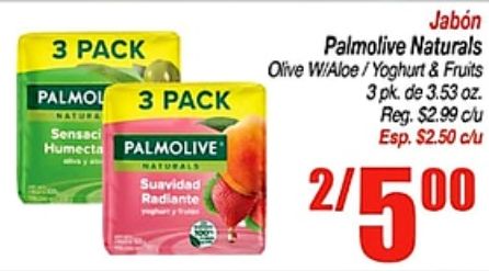 pack palmol natu sensaci humecta palmolive naturals suavidad radiante jabón olive w/aloe/yoghurt fruits reg. $clu esp. $c/u