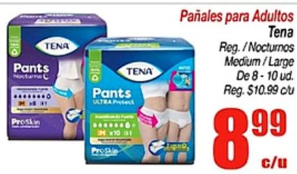 tena pants proskin ultrap paƱales adultos reg/nocturnos medium/large reg. $clu