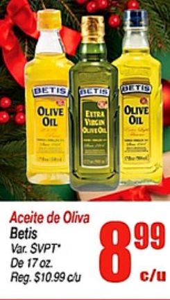 betis olive extra virgin aceite oliva svpt" reg. $clu