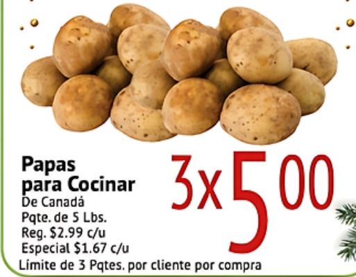 papas cocinar canadá pqte reg. $c/u especial xlímite pqtes. cliente compra