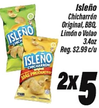 isleno chịch chicharron isleño chicharrón original bbq, limón volao $c/u