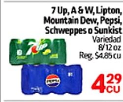 a&w, lipton, mountain dew, pepsi, schweppes sunkist variedad