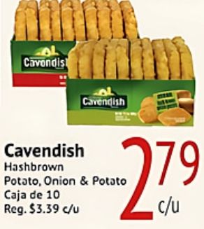 cavendis cavendish hashbrown „potato onion potato caja $c/u