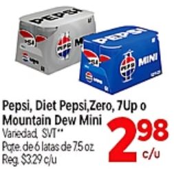 mini pepsi diet pepsi,zero, mountain variedad, svt" pate latas reg. $c/u