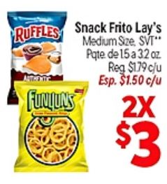 ruffles snack frito lay's funluns medium size svt" pqte $c/u