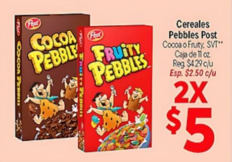 post cocoa pebble fruity pebbles ppebous cereales svt" caja $c/u esp. $the cocor pemmers