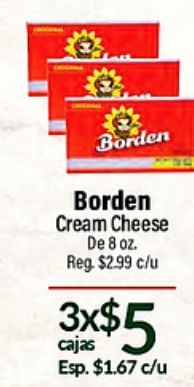 eborden borden cream cheese reg. $c/u x$cajas esp.
