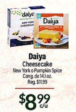 daly york cheezeca daiya cheesecake pumpkin spice cong reg. $$c/u