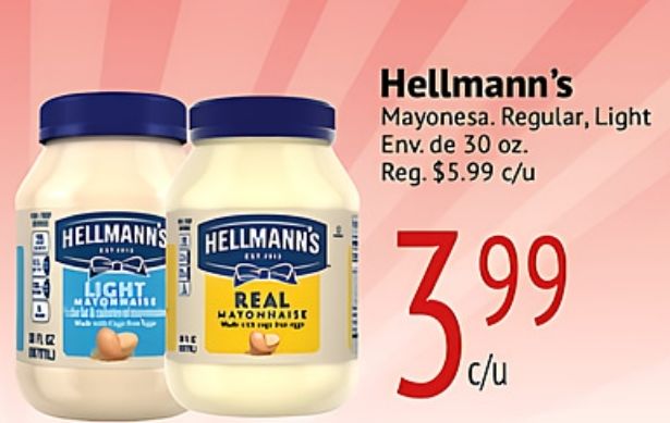 hellmann's light mayomaise real hatonhaise mayonesa regular env. reg. $c/u