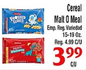 frosted flakes fruity dinonies cereal malt meal reg. variedad
