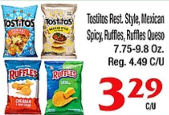 tostitos rest style mexican ruffles chessar spicy, ruffles, queso reg.
