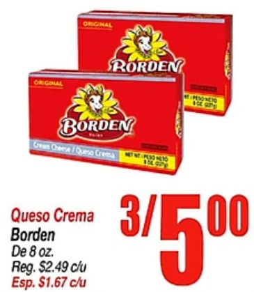 original rorden borden cream cheese queso crema peso pesoncio reg. $c/u esp.