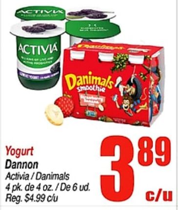 activi activia yogurt dannon activia/danimals danimals ./de reg. $c/u