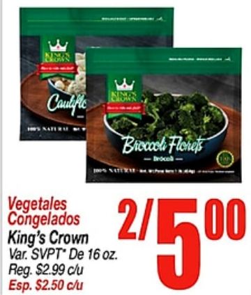 caulifle vegetales congelados king's crown svpt reg. $c/u esp. broccoli flores