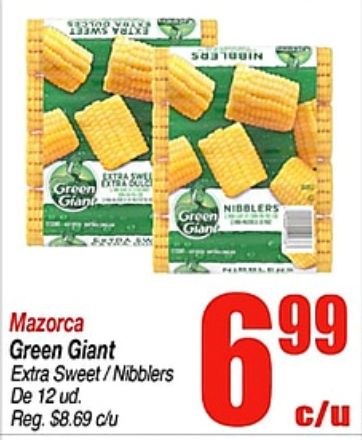 reen giant extra swel green gian nibblers mazorca sweet/nibblers reg. $c/u