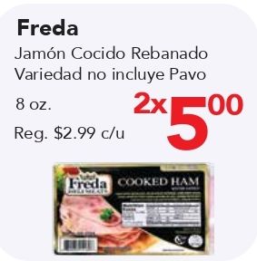 freda jamón cocido rebanado variedad incluye pavo reg. $c/u xfreda cooked