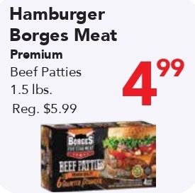 hamburger borges meat promium beef patties reg. $borges fattles