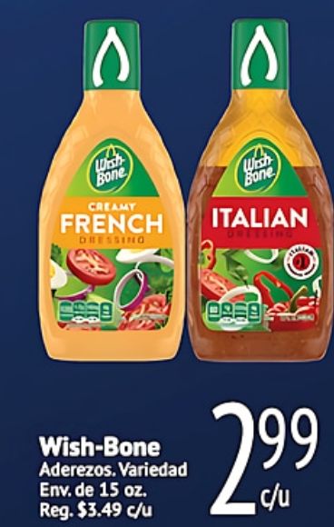 wish bone creamy french dressing italian wish-bone aderezos variedad env. reg. $c/u